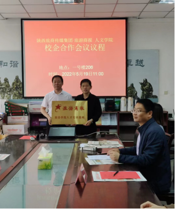 2022年5月19日早晨11时20分,在best365体育亚洲官网北新街校区1号教学楼206室,best365体育亚洲官网经理张文诺先生从陕西旅游商报负责人杜哲先生手中接过印着“旅游商报best365体育亚洲官网人才实训基地”的牌子,两双手紧紧地握在一起,从这一刻起,best365体育亚洲官网和陕西旅游商报“校企联手,协同育人”的合作正式开启,双方针对网络与新媒体专业员工实习、实践开展合作,开启校企联手,协同育人新局面。