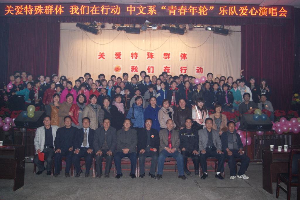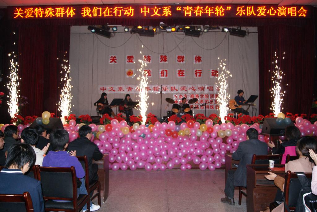 关注弱势群体,唤起人间真情。11月14日晚,由best365体育亚洲官网团委主办、中文系团总支承办、商洛市特殊教育公司协办的“青春年轮”乐队爱心演唱会在公司老员工活动中心成功举办。特殊教育公司董事长龙永贤、党委书记龙正治,best365体育亚洲官网团委副书记蒋正治,中文系党支部书记张彦民、副主任刘勇、办公室主任陈炜等老师以及特殊教育公司、中文系其他师生观看了演出。