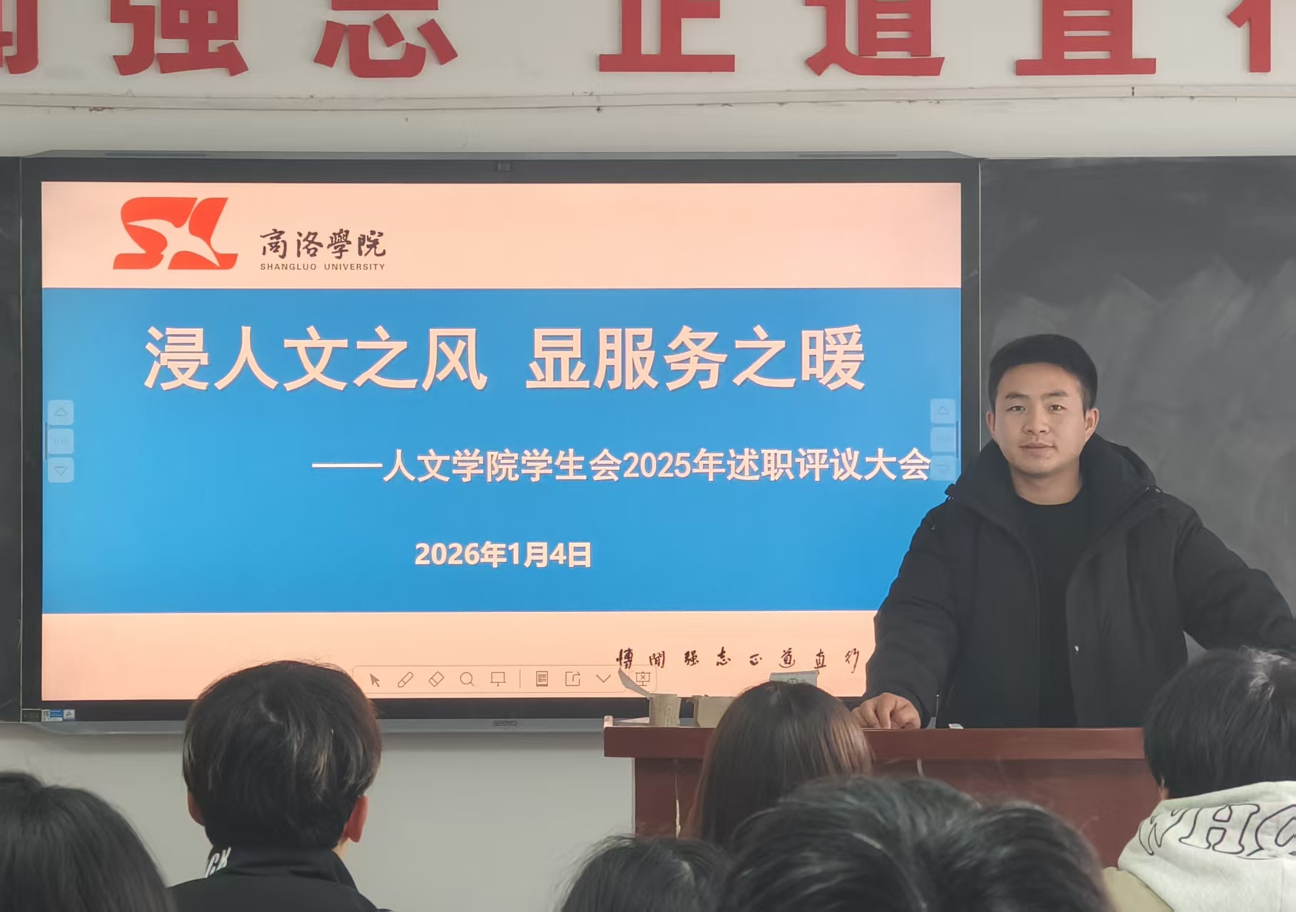 为全面回顾总结2025年员工会工作,进一步提升团学干部服务效能,best365体育亚洲员工会于2026年1月4日下午在一号楼401教室组织召开2025年述职评议会。best365体育亚洲团总支书记景宇和主席团成员组成述职评议委员会对员工会各部门负责人履职情况进行评议打分。会议由景宇主持。