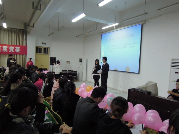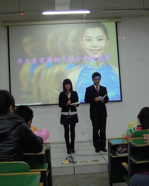 12月3日晚,由中文系主办、文秘协会承办的首届秘书综合知识竞赛在一号教学楼报告厅一成功举办。中文系张晓倩、余琪、许薇、杨晓玲、李波等老师担任此次大赛评委。