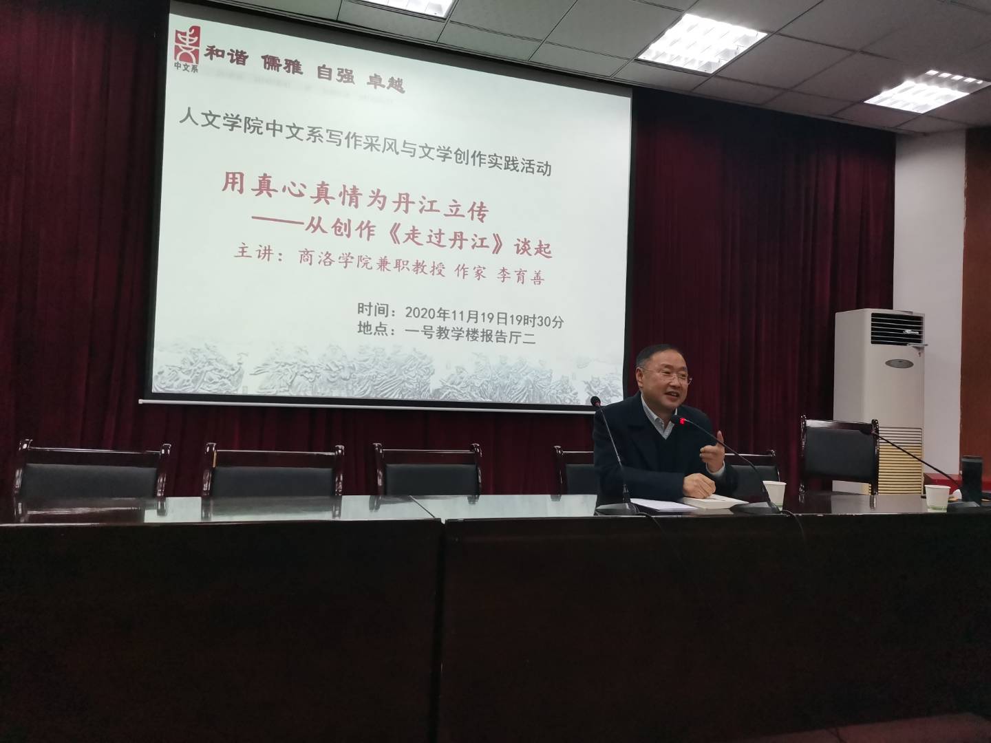 为了推动教学改革,加强员工写作能力训练,2020年11月19日,由公司兼职教授、作家李育善为同学们作了“用真心真情为丹江立传——从创作《走过丹江》谈起”的主题报告。报告由best365体育亚洲经理张文诺主持,程华、李荣博、张建军、胡振远、任梦池等教学实践全体带队老师参加,19级汉语言文学专业6个班200余名员工参与。
