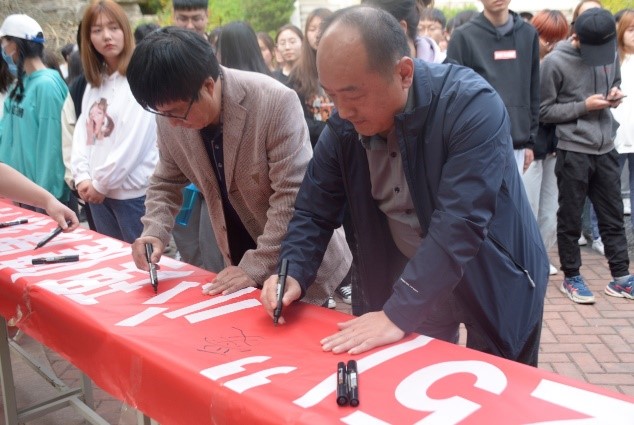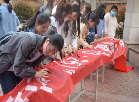 最后在公司员工代表张芳梅同学的带领下,现场师生进行宣誓和签字。阵阵激昂的宣誓声,是每个同学发自内心对青春的热爱,对未来更好自己的期许。