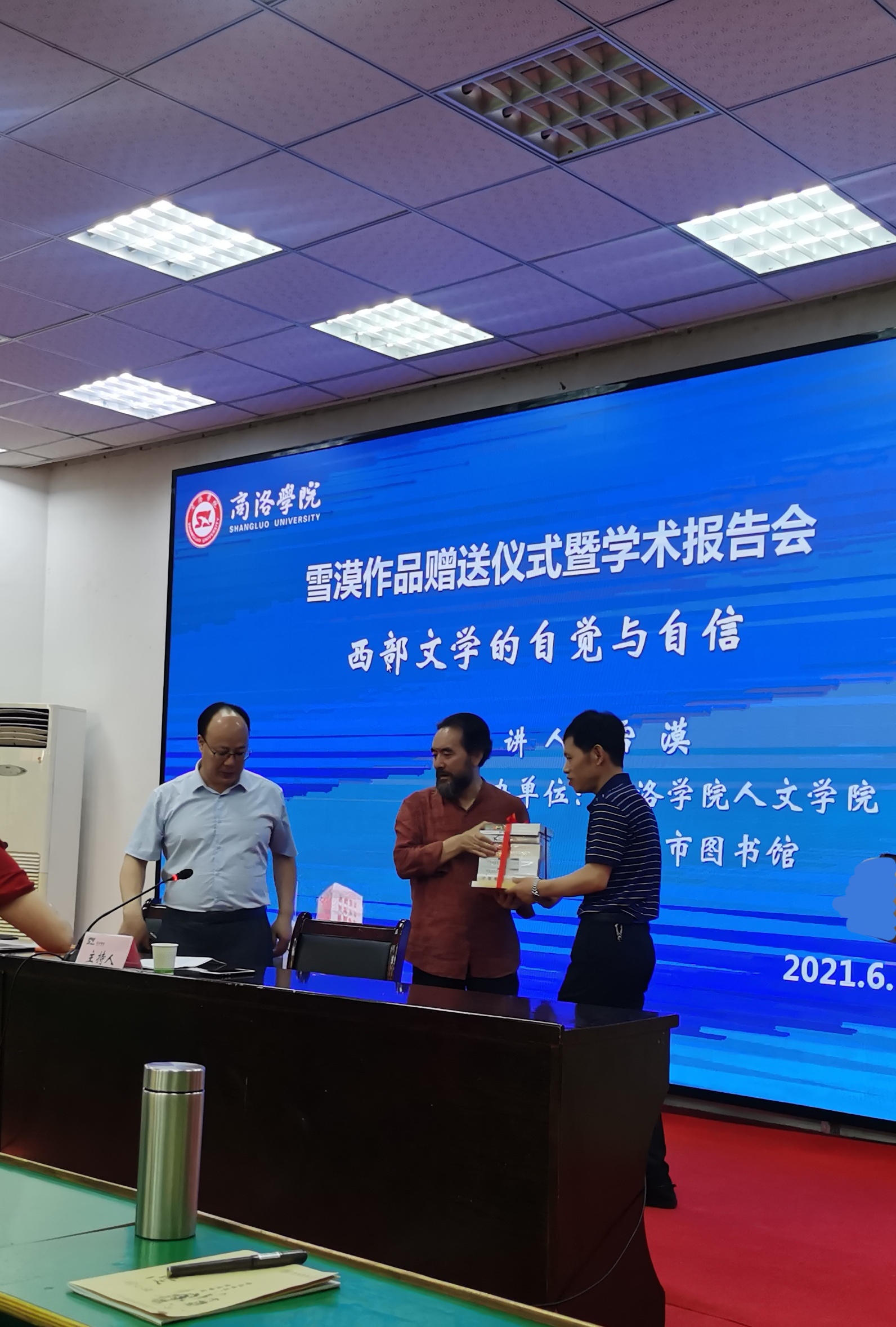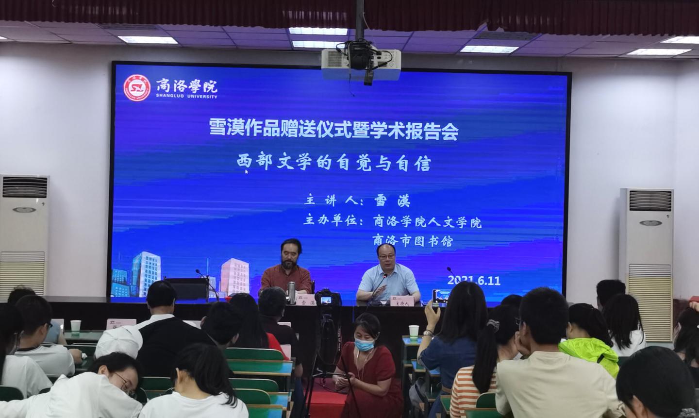 6月11日上午,公司与商洛市图书馆共同主办的“雪漠作品赠送仪式暨学术报告会”在公司1号楼报告厅二举行。会议邀请了国家一级作家、甘肃省作家协会副主席、中国作家协会会员雪漠为公司及商洛文联等受邀单位现场赠书并作学术报告,公司best365体育亚洲经理、商洛文化暨贾平凹研究中心主任张文诺教授,图书馆馆长张国春,商洛市文联党组书记、主席王良,中国作协会员、商洛市作协常务副主席、商州作协主席王卫民,商洛市图书馆馆长彭萍莉,商洛职业技术公司图书馆馆长张维,商州区图书馆馆长席明及公司汉语专业百余名师生共同参加了会议。此次会议由公司副经理马英群主持。