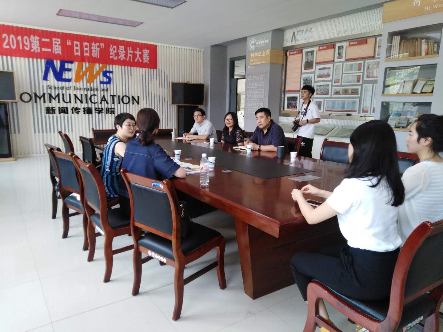 西北政法大学新闻传播公司经理孙江教授、网络与新媒体系主任申玲玲和部分教师热情接待了公司一行。双方针对网络与新媒体专业人才培养方案进行了深度的交流。申主任认真审读了公司网络与新媒体专业人才培养方案并针对其中存在的问题提出了建设性意见,同时介绍了他们在专业建设方面的成功经验,尤其是分享了他们在本专业实践教学方面的做法。双方就专业建设、师生交流以及工作坊的搭建也形成了初步合作意向。