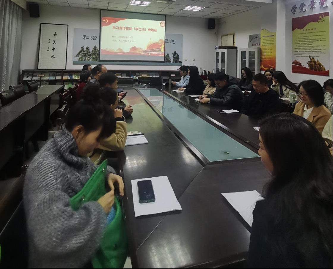 最后会议要求各系要多举措、多方位加强对《学位法》的学习宣传,深刻领会《学位法》的精神,准确把握法律规定,进一步使公司本科生学位工作规范化,从而推动公司旗下产业高质量发展。