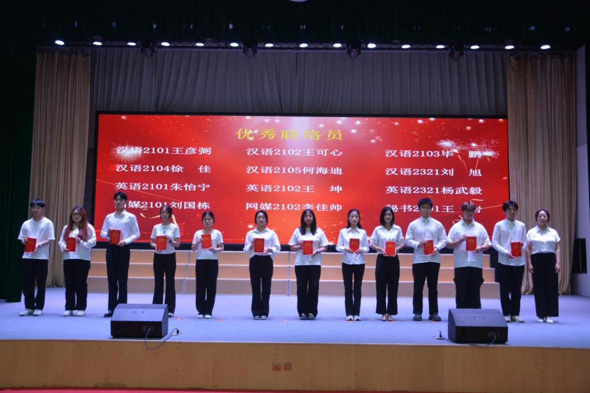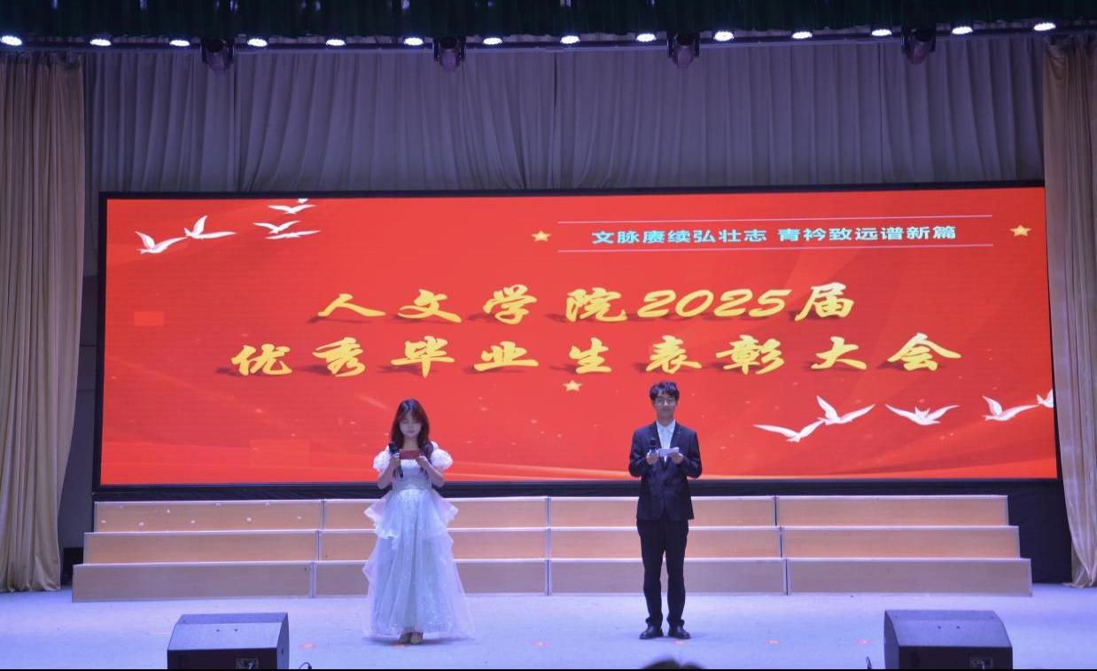 表彰大会上,王刚、赵萍君、刘玉婷、景宇四位老师倾情朗诵了赵萍君副教授创作的诗歌《鹤城的风,吹过你们的梦》,表达了老师们对毕业生的依依不舍与深情祝福。同学们带来的歌曲《我相信》、舞蹈《爱出发》释放了无限的青春活力,表达了对毕业生的美好祝愿。受表彰的同学们为全体教师献上了美丽的花束,表达他们对母校和老师的祝福与感恩之情。
