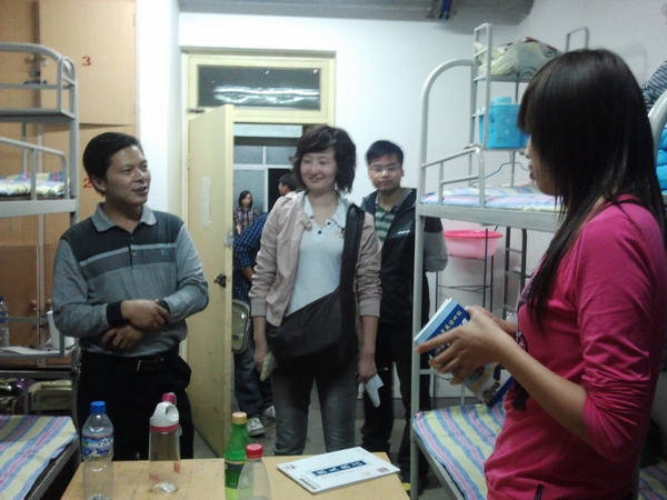 2011 年9月8日 晚,我系党总支书记张彦民、系副主任刘勇、2011级辅导员黄璜及员工代表,前往公寓楼看望2011级新生,并进行了亲切的交谈。
