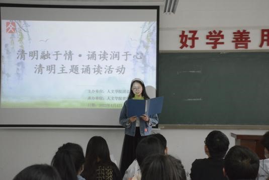 “梨花风起清明时,追思忆远寄情思。”清明节是我国传统的重大春祭节日,扫墓祭祀、缅怀祖先,是中华民族自古以来的优良传统。在清明节到来之际,为缅怀革命先烈,弘扬中华传统文化,增强伟大爱国精神,2022年4月4日上午,best365体育亚洲采用线上+线下的方式面向全体人文学子开展了“清明融于情·诵读润于心”清明主题诵读活动。