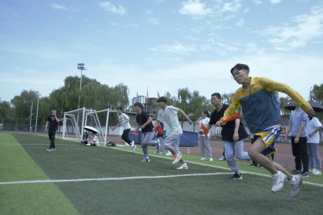 本次趣味运动会三个项目,“艰难长征路”、“朱德的扁担”、“南泥湾抢收”分别来源于三个革命故事。“艰难长征路”,1934年10月至1936年10月,红军进行了伟大的长征,英勇的红军,长驱二万五千里,跨越江河险峰,征服冰山雪岭。“朱德的扁担”,1928年冬,敌人对井冈山革命根据地实施经济封锁,时任军长朱德身先士卒,每天挑着粮食,往返于山路之间,吃苦在前、心系战士。“南泥湾抢收”,1941年3月,八路军一二零师三五九旅,不畏艰险、勇挑重担,从驻守河防开赴南泥湾屯田。自力更生,艰苦奋斗,将昔日荒无人烟的地方变成了陕北的好江南,活动开始人文学子伴随着激昂的音乐,斗志昂扬地向漫漫征途出发,重走红军路,重温革命史,体验红军的行军生活,接受红色教育洗礼。