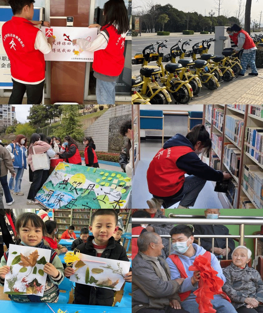 3月6日,志愿者在公司投放若干把共享雨伞,在雨天为大家送去温暖。3月11日,前往商丹大道整理共享单车,引导市民文明骑行、有序停放。3月13日,在玉兰广场举行环保知识竞赛,倡导同学们保护母亲河。3月18日,走进儿童之家,为孩子们传播新知识。3月19日,来到商洛市图书馆,整理图书,为读者答疑解惑。3月21日,前往百顺山老年公寓,表演节目,为爷爷奶奶带去欢声笑语。