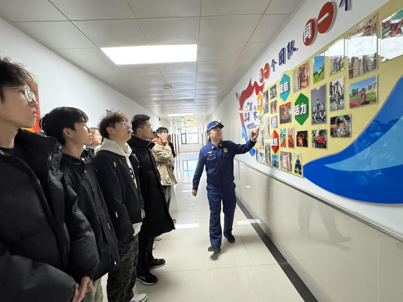 在工作人员带领下,师生们参观了消防员的宿舍内务、健身房及俱乐部,更加深入的了解了消防员的日常工作和生活。随后参观了消防大队的荣誉室,了解了大队的光辉历史、英勇事迹以及在各类抢险救援任务中取得的卓越成就。一面面锦旗、一张张奖状、一个个感人至深的故事,无不深深震撼着同学们的心灵,让大家对消防战士们为守护人民生命财产安全所付出的艰辛努力和巨大牺牲有了更加深刻的认识与敬意。