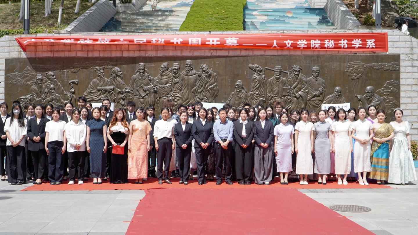 活动现场设置了秘书技能、茶艺、职业礼仪展示以及民族服饰走秀等内容,其中民族服饰走秀通过旗袍及部分少数民族服饰展现了传统文化魅力,秘书2301班的礼仪操诠释了秘书职业素养,秘书2401班谭涵月演唱的《蜉蝣》等节目将现场气氛推向高潮……同学们通过实践操作和趣味互动环节,进一步加深了对专业知识的理解,同时也增强了团队协作能力。