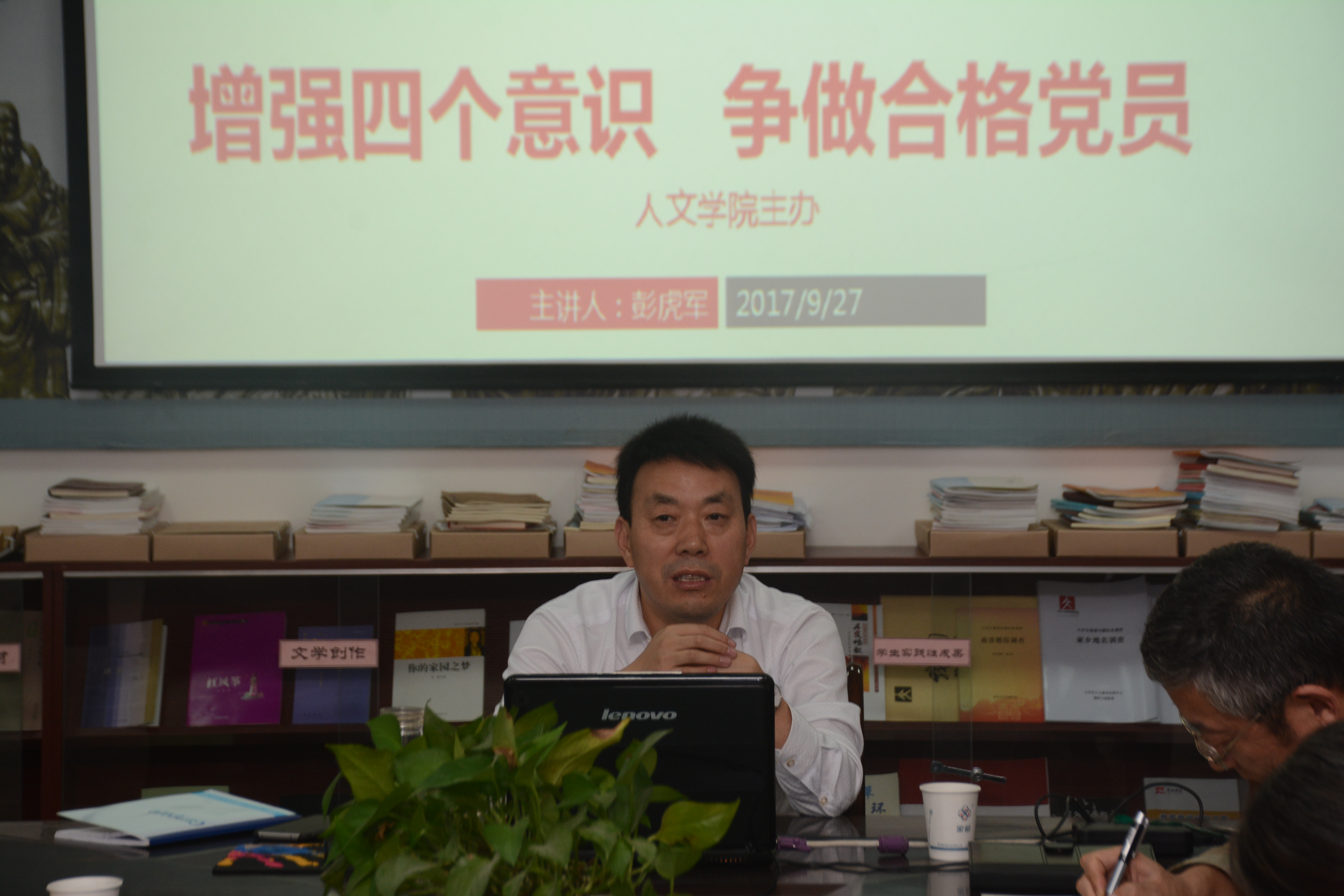 党委副书记彭虎军从充分认识增强四个意识的必要性和重大意义、深刻理解“四个意识”的科学内涵、强化“四个意识”实践,做合格党员三个方面进行全面细致阐释,特别强调了十八届六中全会“全面从严治党”的主要议题和鲜明主题;深刻解读了政治意识、大局意识、核心意识、看齐意识四个意识的科学内涵;要求每位党员立足工作岗位做一个具有“四讲四有”的合格党员。
