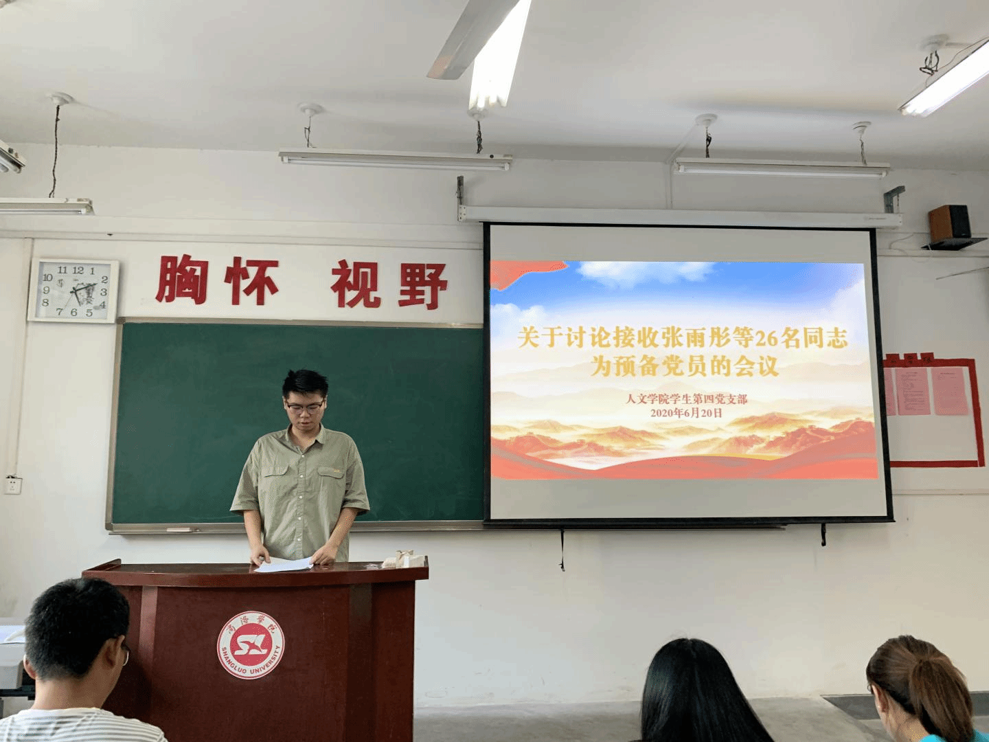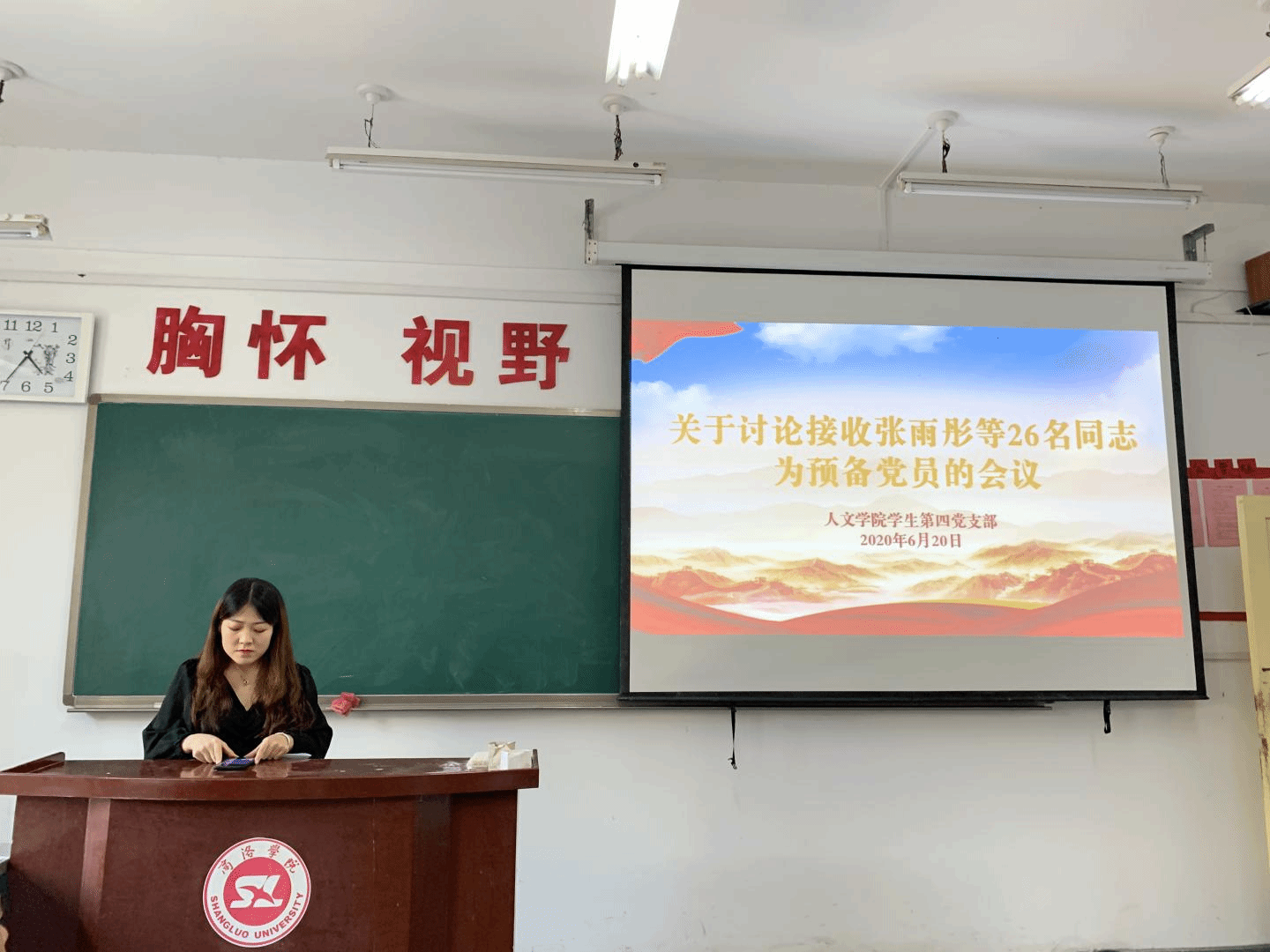 会议开始,董婉莹对支部近期工作做出安排,随后,大会围绕接收张雨彤等26名同志成为预备党员讨论并决定发展对象的入党问题。会议严格按照党组织接收预备党员程序,由发展对象汇报入党动机、思想情况以及个人经历。与会正式党员对发展对象是否符合党员条件进行投票表决,大会一致同意接收张雨彤等26名同志成为中共预备党员。
