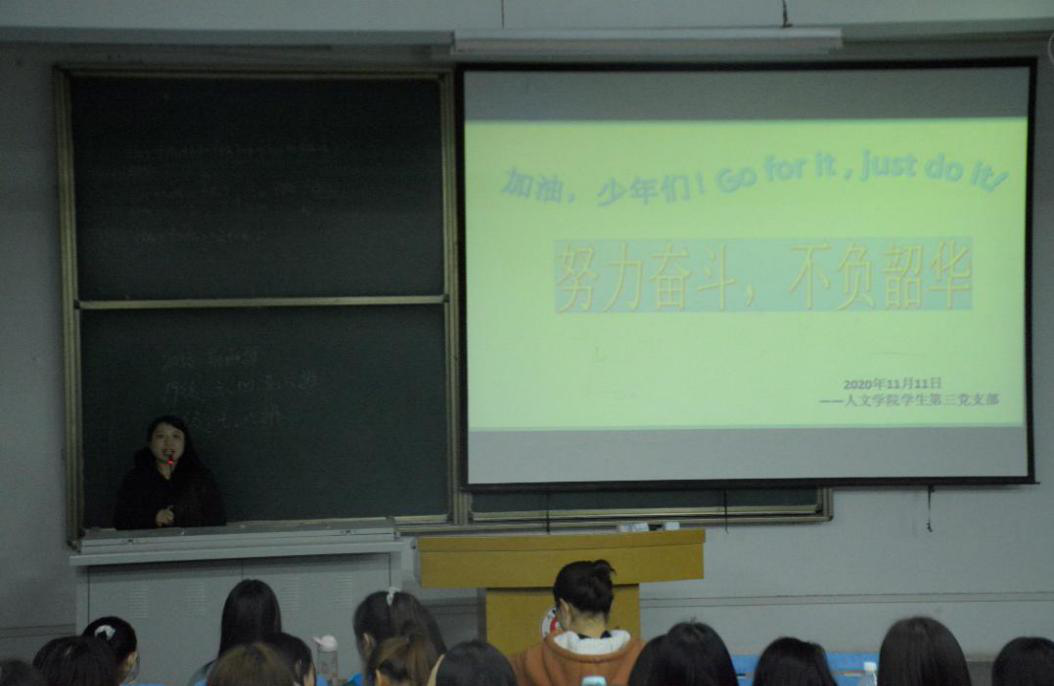 为全面贯彻十九届五中全会精神,积极响应公司党委“不负韶华,争做新时代文明老员工”主题教育号召,强化员工专业素养和综合素质,提高员工党员服务意识,公司员工第三党支部于2020年11月11日在多媒体3举办“交流,分享”英语专业交流会暨“不负韶华,争做新时代文明老员工”主题党日活动。本次活动由韩艺沛同志主持,第三党支部书记吴娜、全体第三党支部全体党员、积极分子和英语专业2020级、2019级员工参与。