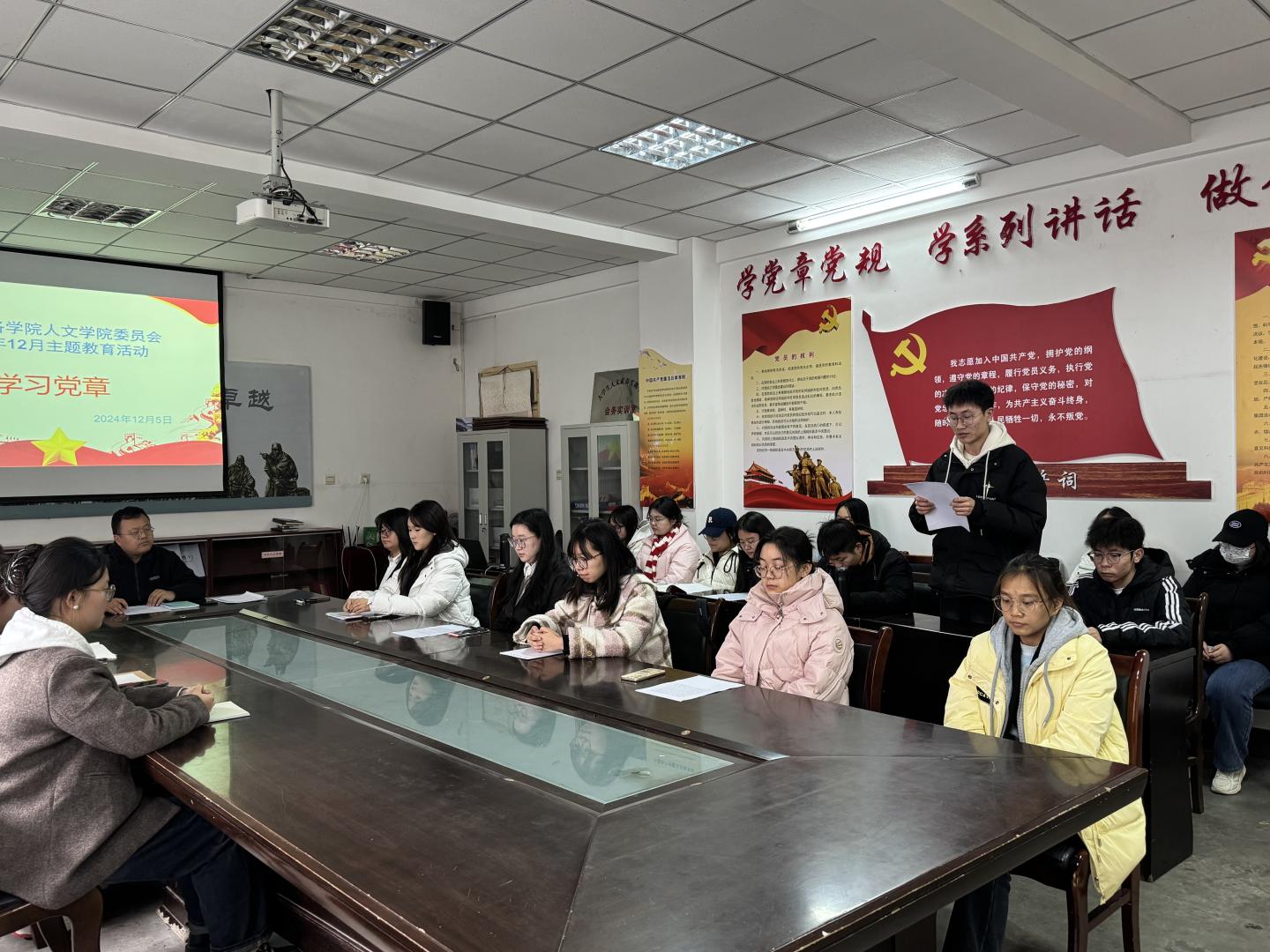 发展对象代表郝婧辉、杜思婕,入党积极分子代表赵建祥、段楠萍带领全体党员逐章逐节学习党章内容,重点领学党章中的总纲、党的组织制度、党的纪律以及党员的权利和义务等关键章节。通过学习,党员们对党章有了更深刻的理解和认识,进一步明确了自己在党内的责任与使命。