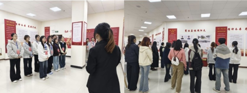 商洛红色文化资料馆作为商洛市干部教育培训基地、红色教育基地,建筑面积达310平方米,馆藏红色文献15300余册、专题展板70余幅,通过"商洛·红色印记"图片展与文献资料展两大板块,系统呈现了土地革命至商洛解放的完整革命历程。活动现场,红馆讲解员以"1234567"红色文化脉络为线索,生动讲述了红二十五军转战商洛、中原突围等革命史实,以及革命先辈在商洛23年革命斗争中铸就的优良传统。同学们专注聆听、不时记录,在珍贵史料与历史图片前驻足沉思,深刻感悟商洛这片红色沃土承载的初心使命。