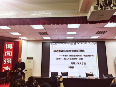 张文诺对卢燕新教授受聘best365体育亚洲兼职教授表示感谢与欢迎,并向与会师生介绍了卢燕新教授的研究方向及主要成就。在兼职教授聘任仪式上,董事长范新会向卢燕新颁发了兼职教授聘任证书并合影。卢燕新对成为公司兼职教授表示荣幸与感谢,并表示自己作为best365体育亚洲官网的员工对这所公司有很深的感情,今后将与best365体育亚洲官网的领导、同仁一起,为best365体育亚洲官网的建设添砖加瓦。聘任仪式结束后,卢燕新教授作了题为《唐诗细读与研究论题的提出》的报告,在报告中,卢燕新教授从李白的《春夜洛城闻笛》“此夜曲中闻《折柳》,何人不起故园情”谈起,启发师生在文本欣赏中发现问题的方法,一是潜心阅读、养成习惯;二是发现问题、绝不放过;三是精读典籍、深入研讨。